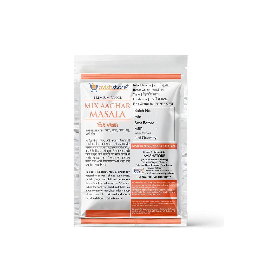 Indulge in the vibrant flavors of our mixed pickle masala. This carefully curated blend of spices is perfect for creating a delicious assortment of pickles.